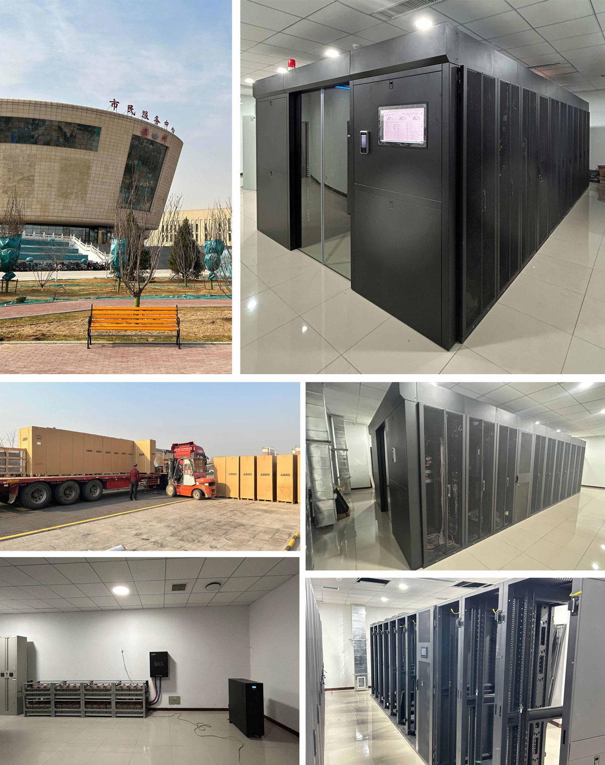 某市市民服務(wù)中心 機(jī)房雙排模塊冷通道微模塊中心設(shè)計(jì)、施工,內(nèi)搭載1臺列頭柜,2臺25kW列間空調(diào),19個(gè)服務(wù)器機(jī)柜,外設(shè)1臺60kW UPS電源+電池組組合,擁有快速部署、高效節(jié)能、遠(yuǎn)程管理等特點(diǎn),滿足客戶在云時(shí)代對數(shù)據(jù)中心管理的需求。