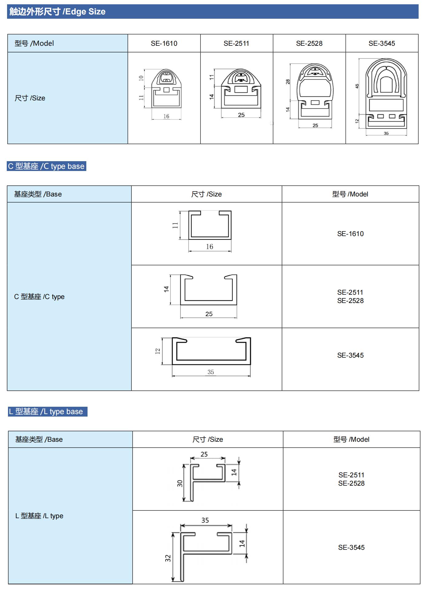 ◆ 外形及安裝方式可任意配置,根據用戶要求,安全觸邊可以制作成圓弧形或其他形狀;