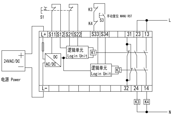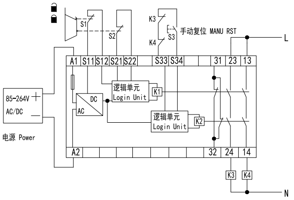 用于監控急停開關、安全門開關!特點:1、可檢測輸入觸點的短路故障;2、可選擇受控手動復位和自動復位;3、具有自我監控的電路;4、工作狀態實時監測。PLe;安全類別:Cat.4;SIL3主要參數:型號SR4P2A1B22復位模式手動或自動工作電源DC/AC85-264V功耗3W輸出觸點2N/O,1N/C切換容量AC-15,5A/250V;DC-13,6A/24V釋放緩...