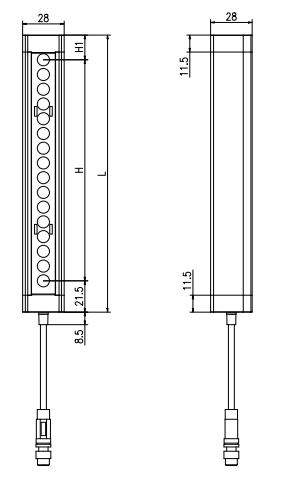 H: 保護高度;?H1: 最上一束光到端蓋的距離 : 16.5mm( 間距 10mm), 26.5mm( 間距 20mm), 46.5mm( 間距 40mm);