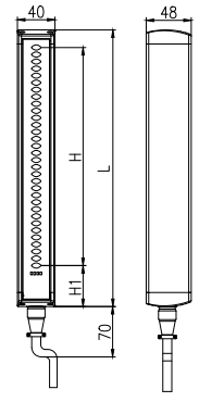 H:保護(hù)高度, L:傳感器高度,L:傳感器高度,H1=50mm,第一束光與下端蓋距離
