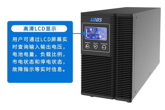 用戶可通過LCD屏幕實(shí)時(shí)查詢輸入輸出電壓,電池電量,負(fù)載比例,市電狀態(tài)和停電狀態(tài),故障指示等實(shí)時(shí)信息。